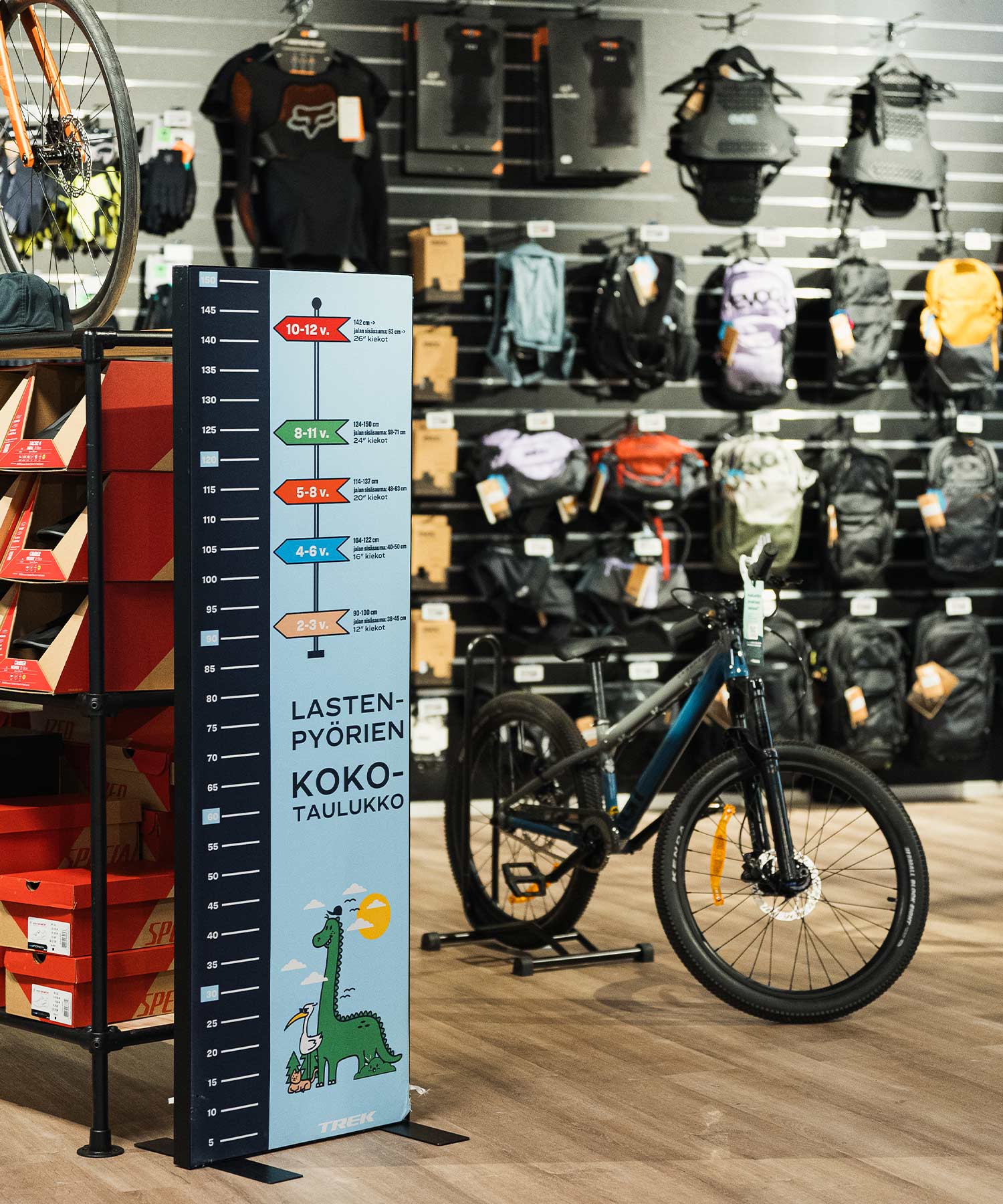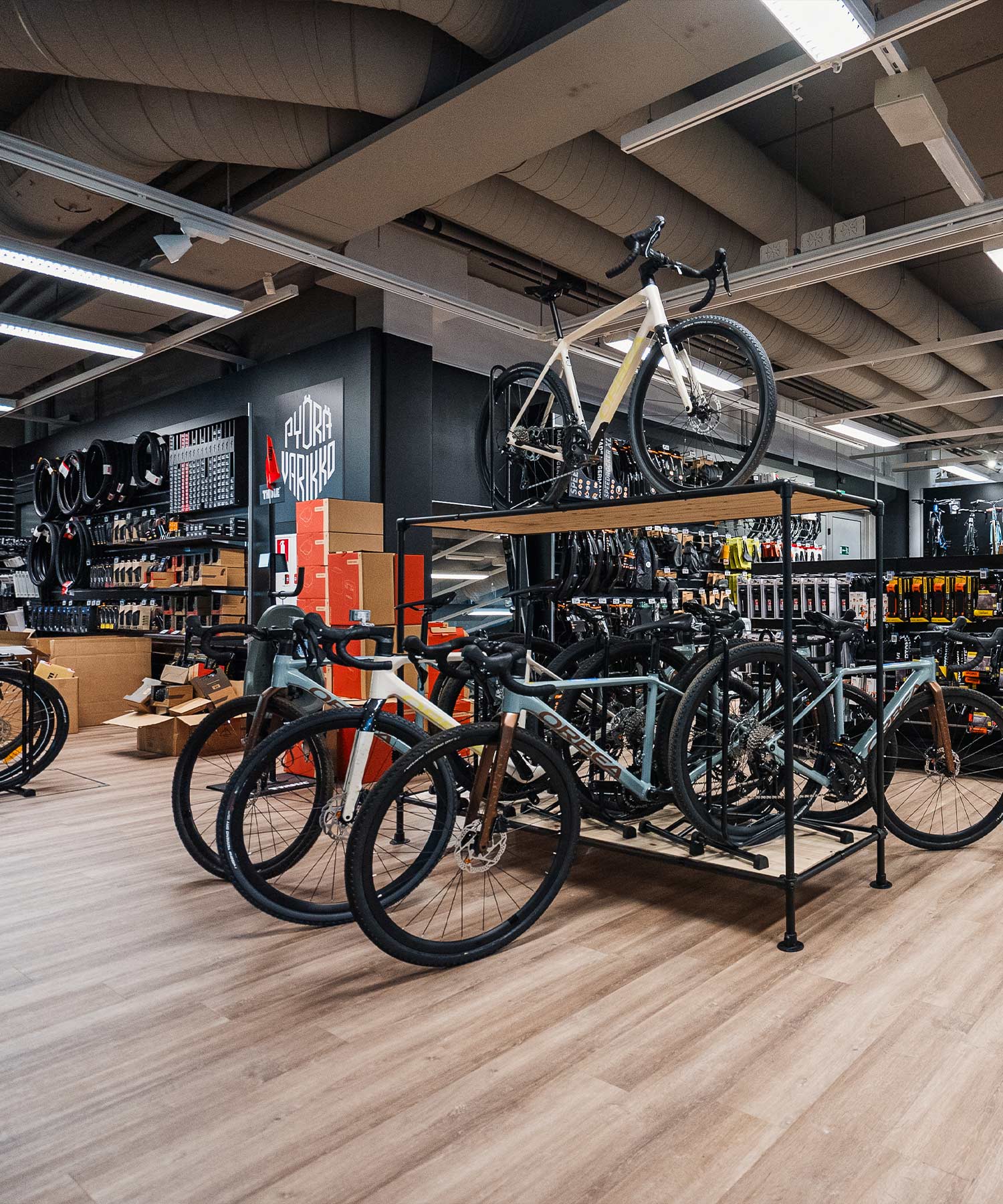 ajovarusteita, sekä polkupyöriä muun muassa merkeiltä Trek, Specialized ja Orbea.